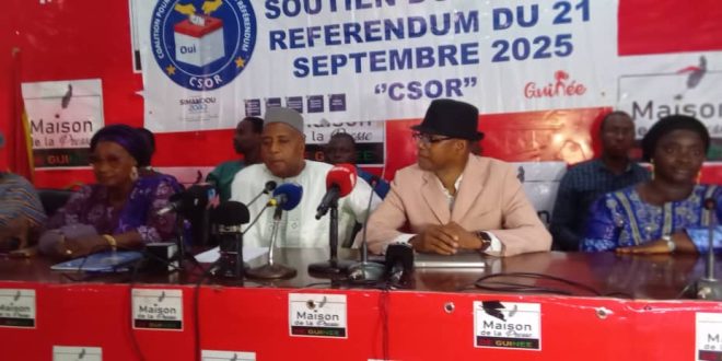 Les membres de la Coalition pour le Soutien au « Oui » du Référendum (CSOR) ont animé ce samedi 12 juillet 2025 un point de presse à la maison commune des journalistes pour inviter le peuple de Guinée à voter « OUI » au référendum du 21 septembre 2025.