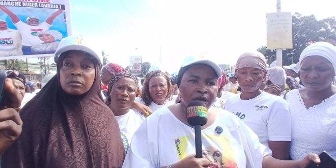 Suite à l’annonce faite par le président de la délégation spéciale de Matam Aly Badra Checkna Koné, les femmes du marché de Madina ont organisé ce lundi 20 octobre 2025 une manifestation à travers une marche citoyenne pour exiger la candidature obligatoire du président Mamadi Doumbouya à l’élection présidentielle du 28 décembre 2025.