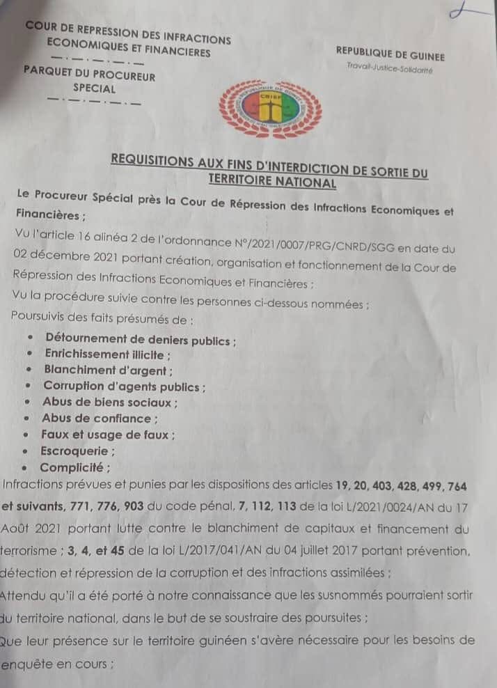 Guinée / CRIEF: Une centaine de DAAF sont interdits de sortir du pays par le Procureur spécial Alphonse Charles Wright