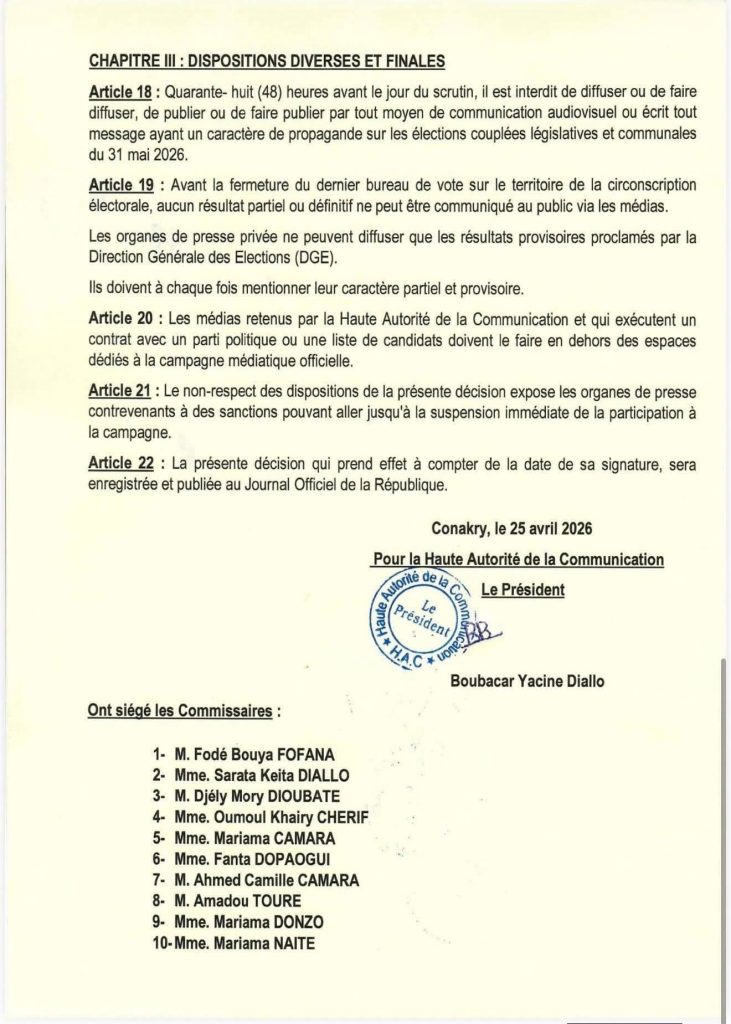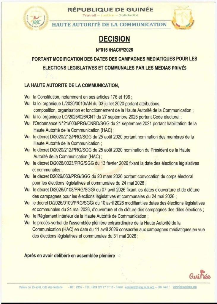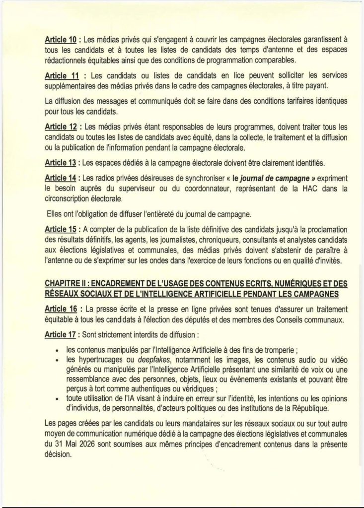 Dans le cadre de la couverture médiatique des élections législatives et communales du 31 mai prochain, la Haute Autorité de la Communication (HAC) a publié la nouvelle décision vis-à-vis des médias privés.